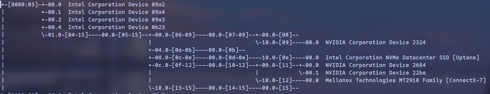 lspci -tv | egrep -i "nvidia | nvme"状态检查: